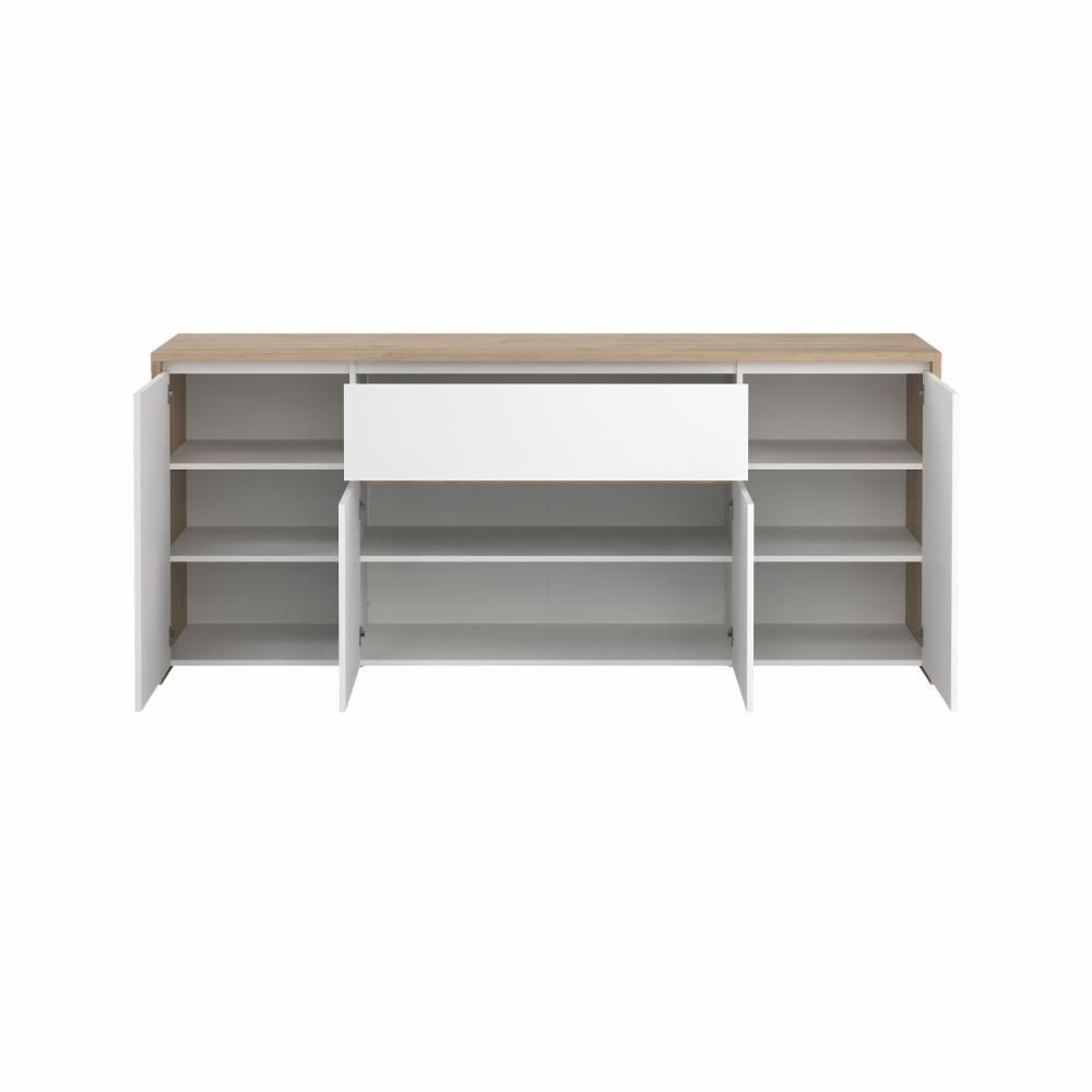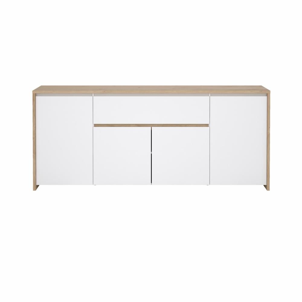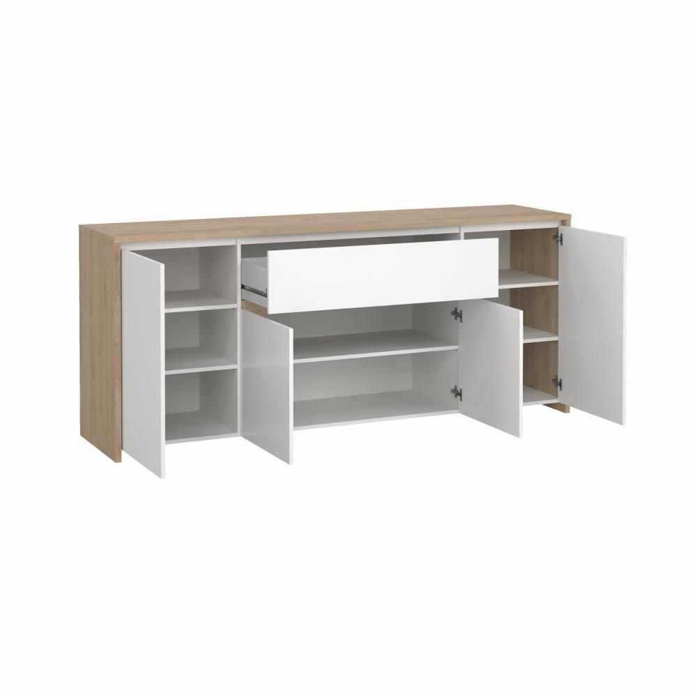 خزانة Next Sideboard تجسد التصميم الاسكندنافي بأناقة خطوطه النظيفة ووظائفه العملية. تحتوي على أربعة أقسام مغلقة بأرفف، ودرج عملي، وبعمق 48 سم، ما يوفر مساحة واسعة للتخزين مع لمسة عصرية تضفي أناقة على غرفة المعيشة.