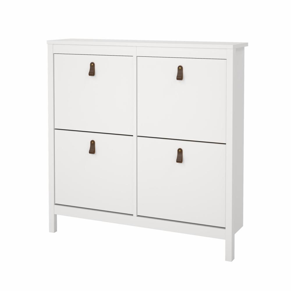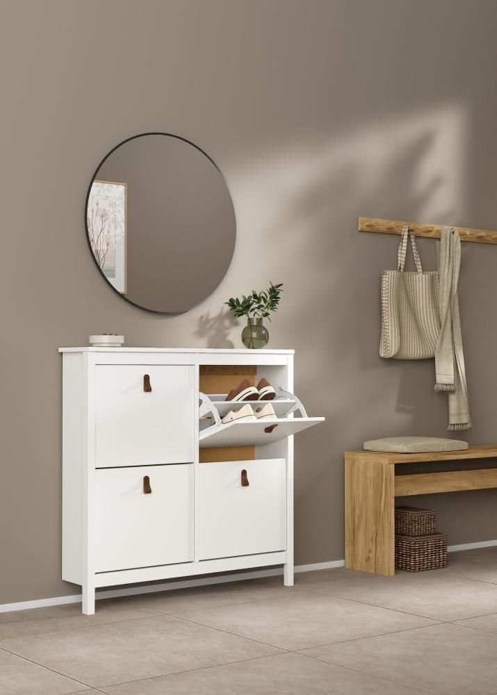 خزانة أحذية 'مدريد' هي حل تخزين متعدد الاستخدامات وموفر للمساحة لأحذيتك. بأربعة أبواب قابلة للطي، توفر هذه الخزانة طريقة غير ظاهرة وعملية للحفاظ على أحذيتك مخفية بشكل أنيق. يمكنها استيعاب ما يصل إلى 16 زوجًا من الأحذية، مما يضمن بقاءها منظمة ويسهل الوصول إليها. يأتي معها نوعان من المقابض (مقبض جلدي وآخر دائري) لتغيير شكلها حسب ذوقك.
