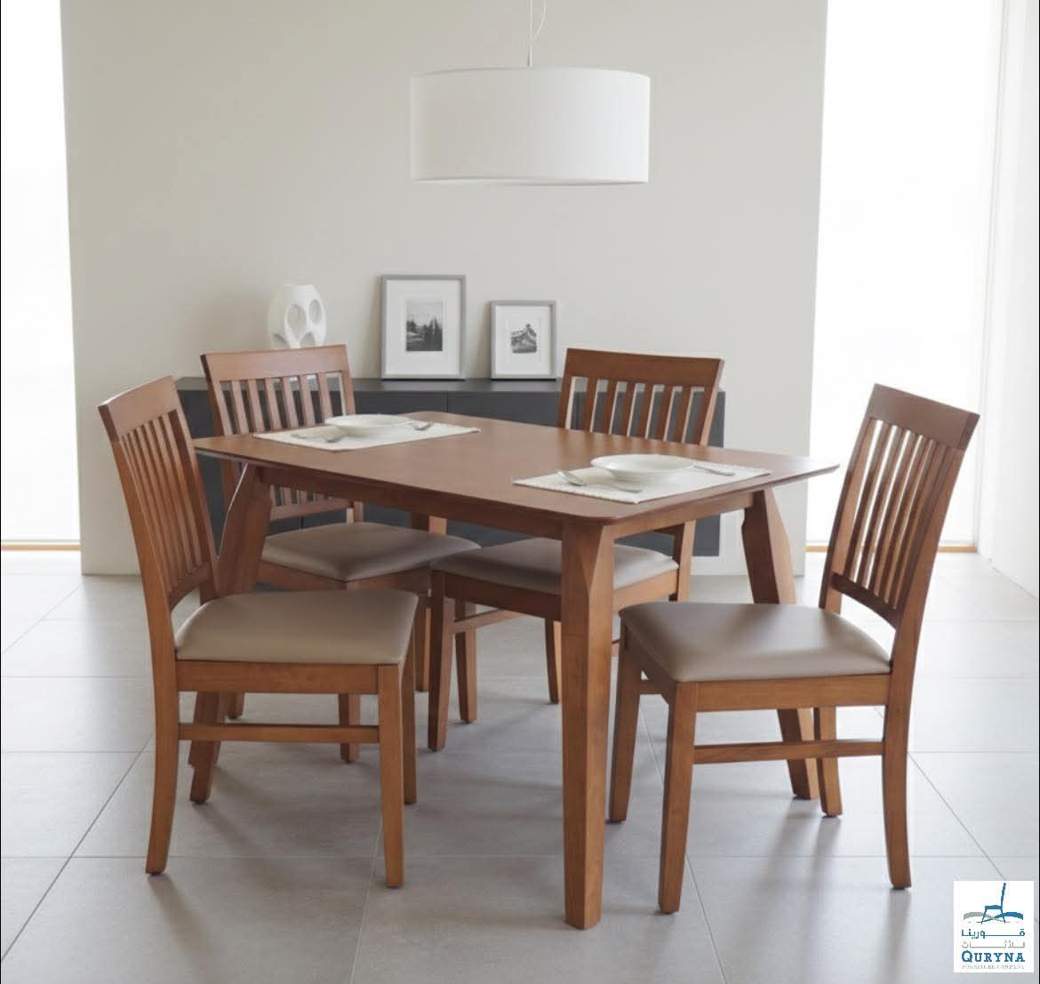 تأتي مع 4 كراسي خشب طبيعي بتصميم متناسق يوفر جلوس مريح وثبات ممتاز.