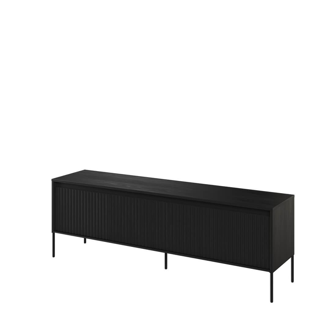 قاعدة التلفاز السوداء هذه تجمع بين الأناقة والعملية، حيث توفر مكانًا آمنًا لتخزين الأجهزة متعددة الوسائط مع إضافة لمسة تصميمية فريدة لغرفة المعيشة.