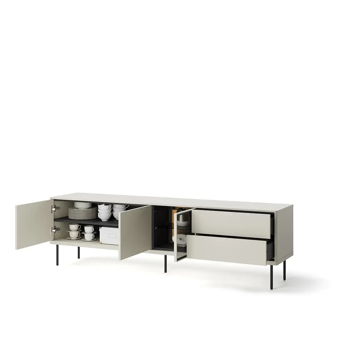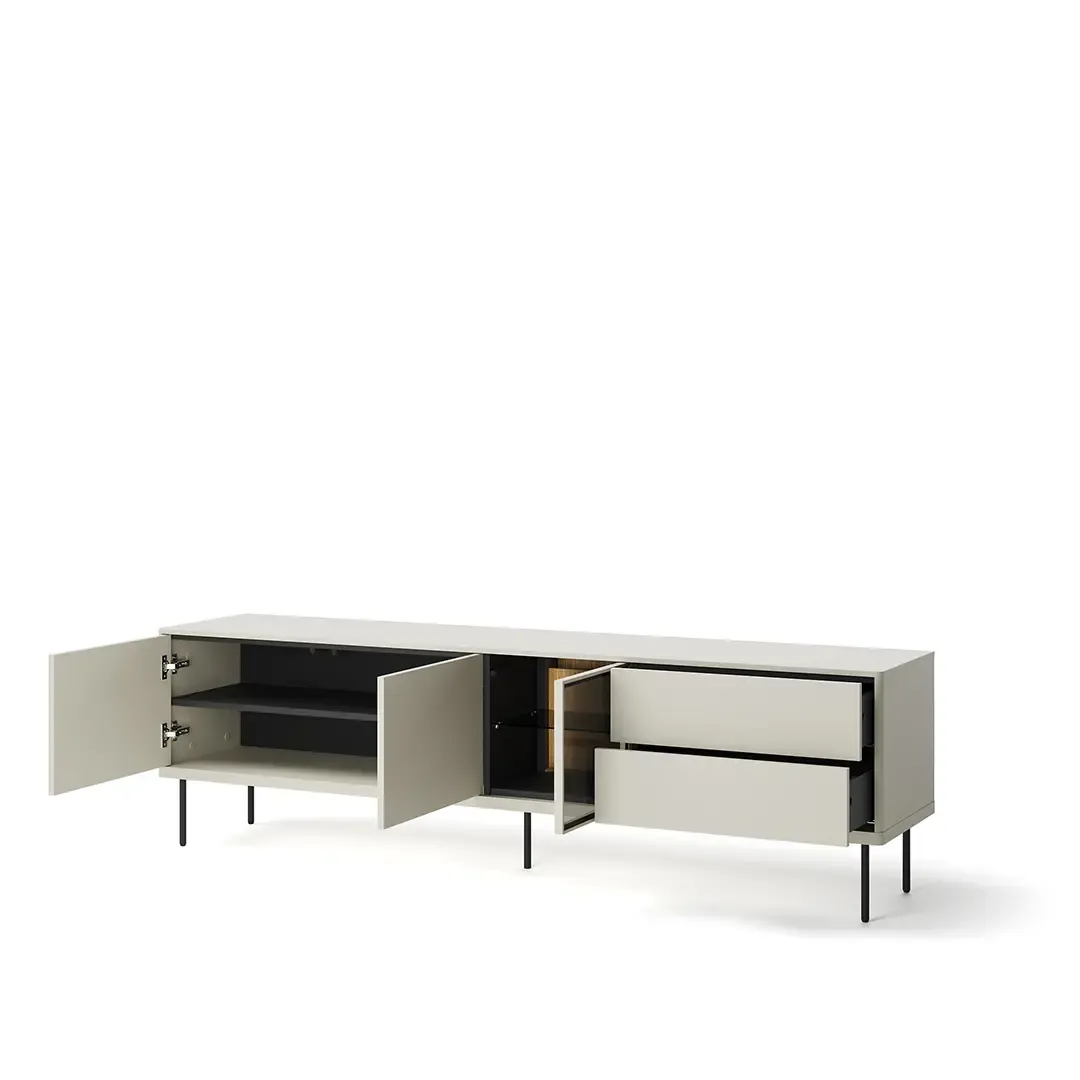 توفر خزانة التلفاز مكانًا مستقرًا للشاشة ومعداتك، مع أدراج واسعة لتنظيم الريموتات، الكابلات، الألعاب، وغيرها من الملحقات الصغيرة. قطعة تجمع بين الأناقة والوظائف العملية، تجعل غرفة المعيشة مرتبة، منظمة، وأكثر راحة لجميع أفراد العائلة.