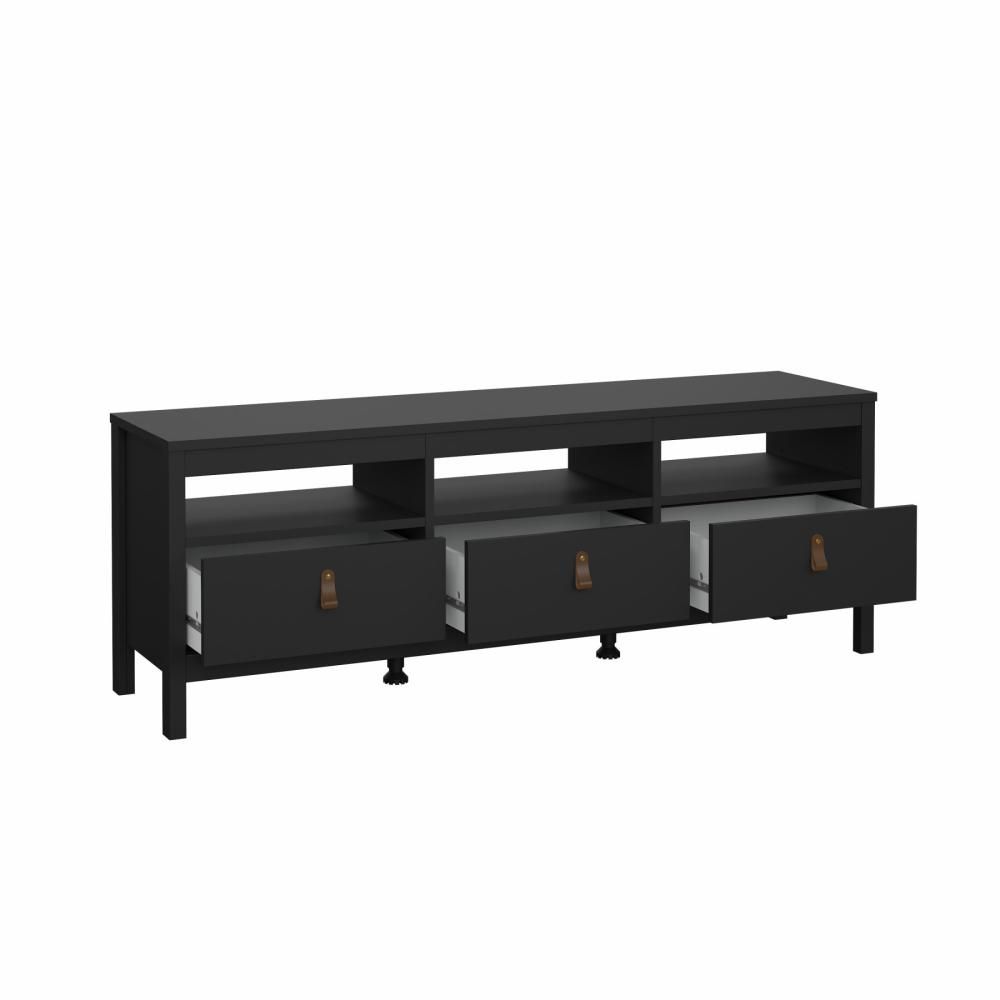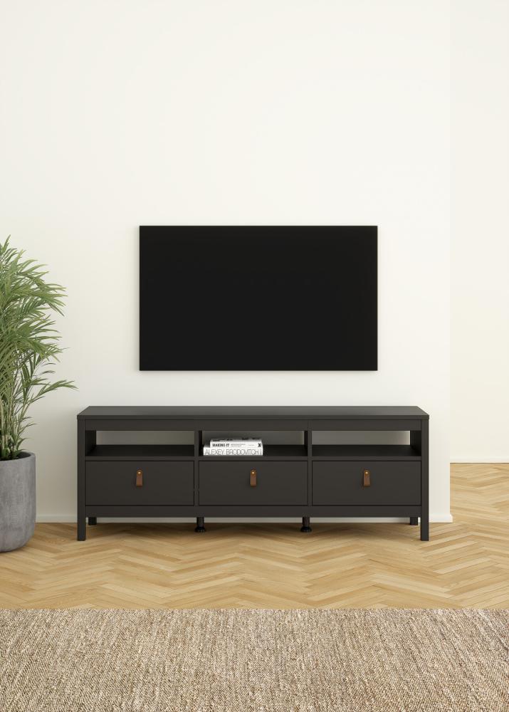 وحدة تلفاز 'مدريد' هي حل تخزين عصري وحديث لأجهزة الترفيه. تتميز بثلاثة أدراج للتخزين وثلاثة أجزاء مفتوحة لسهولة الوصول إلى أجهزتك، وهي تجمع بين الأناقة والجانب العملي. يأتي معها نوعان من المقابض (مقبض جلدي ومقبض دائري) لتغيير شكلها حسب ذوقك.
