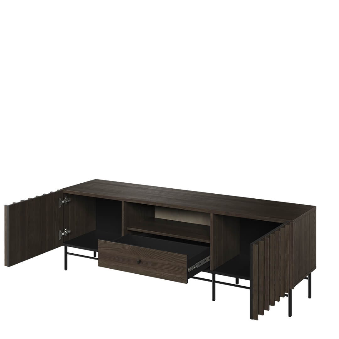 تجمع وحدة التلفاز العصرية هذه بين التصميم الأنيق والوظيفة العملية، وتتميز بمزيج لوني فريد وجذاب من لون "الأَش البورتلاندي" واللون الأسود.
