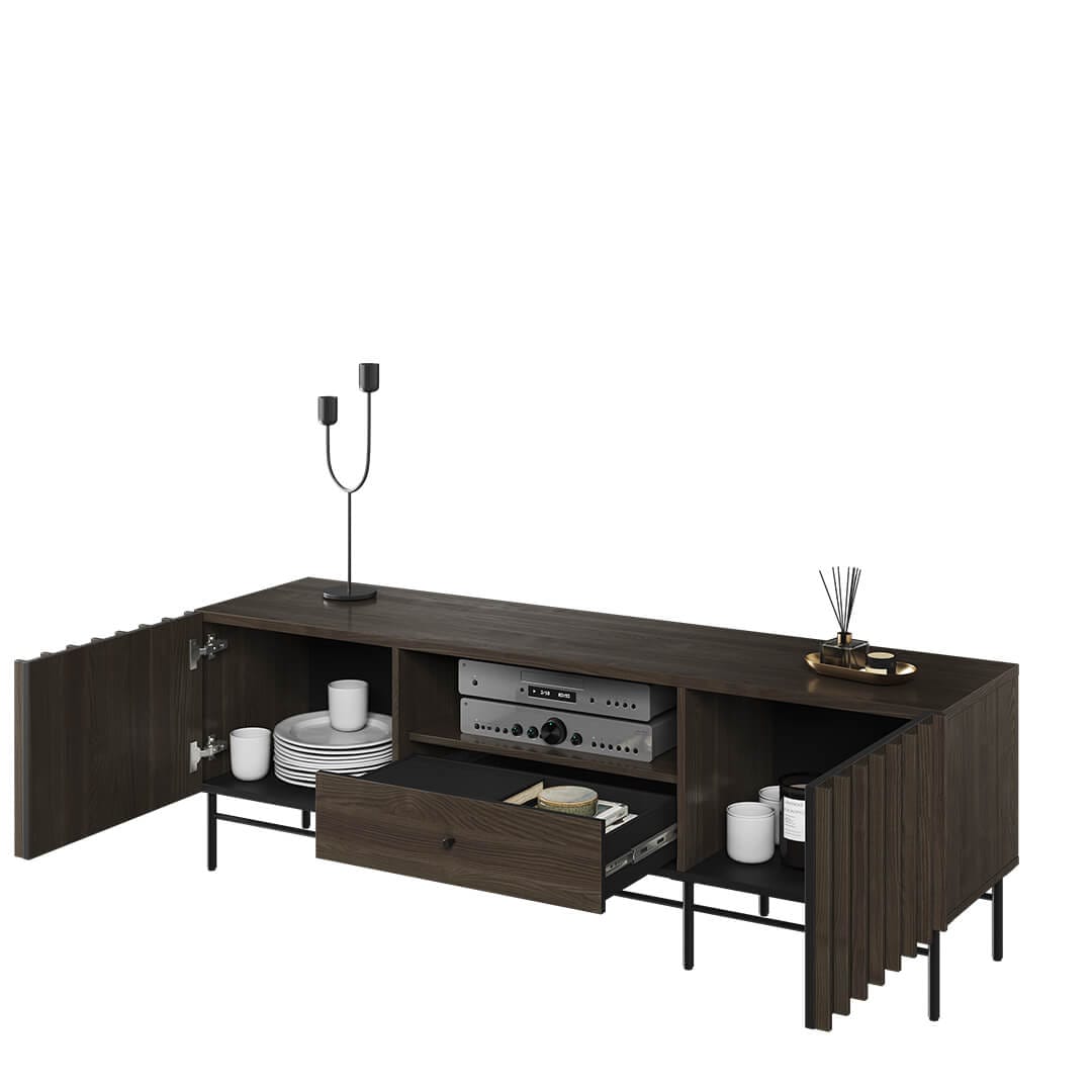 توفر مساحة تخزين ذكية وواسعة من خلال خزانتين، درج عملي، وجزء مفتوح مخصص للأجهزة الإلكترونية المختلفة، مما يضمن التنظيم الكامل.