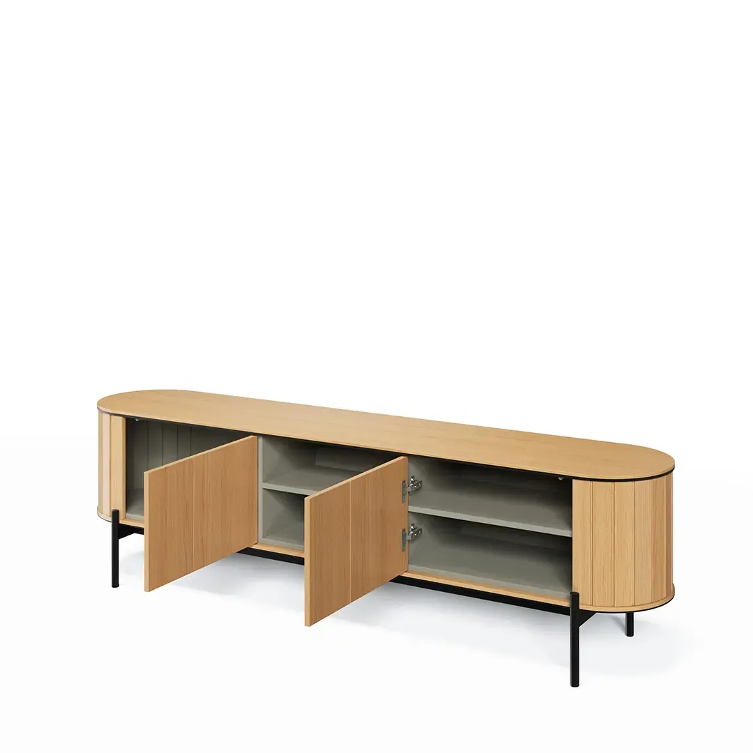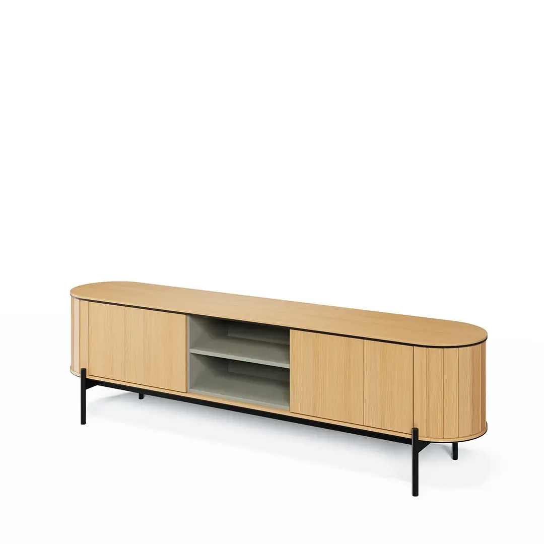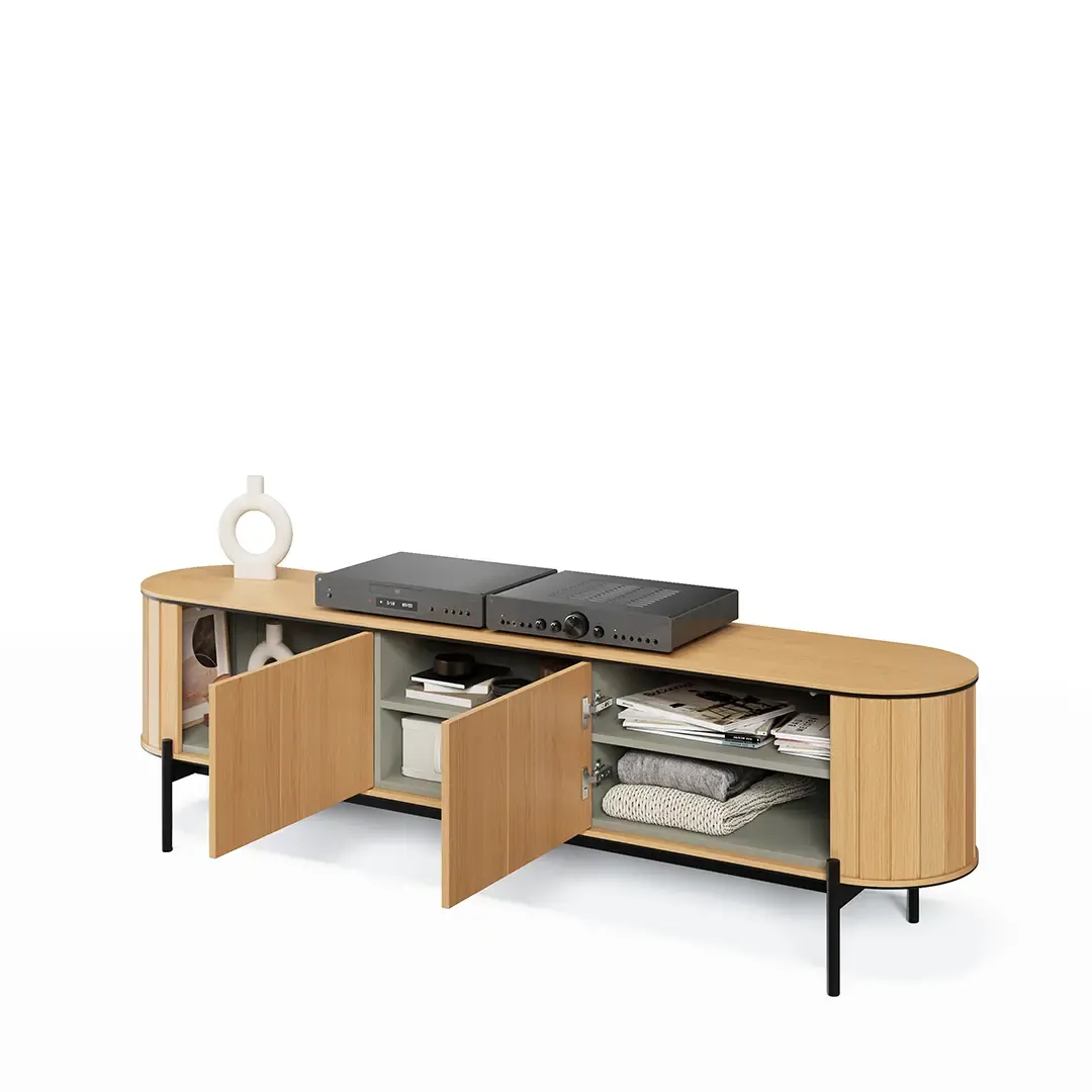 الخزانة الكبيرة للتلفاز هي الحل المثالي لجمع الأناقة مع العملية في غرفة المعيشة.