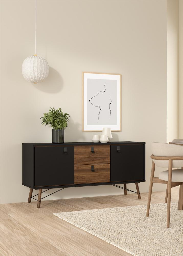 بوفيه Ry ببابين ودرجين، يجمع بشكل مثالي بين التصميم والوظيفة العملية. تحافظ الأدراج على ترتيب الأغراض الصغيرة، بينما توفر الخزائن مساحة واسعة للمقتنيات الأكبر حجمًا. يمكنك تخصيص الأرفف للحصول على أقصى مرونة في التخزين.