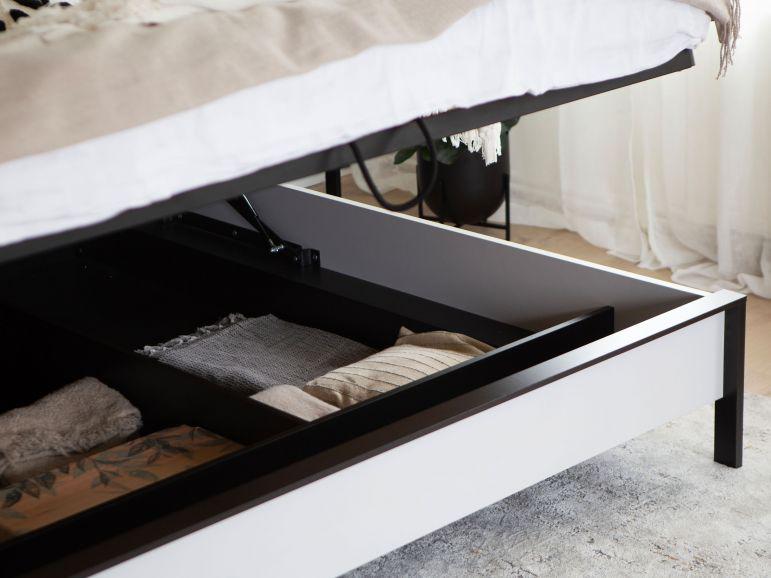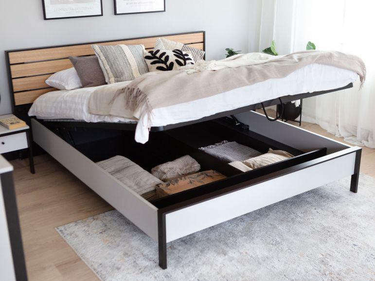 تخزين فائق: سرير يرتفع ليكشف عن مساحة تخزين واسعة ومنظمة.