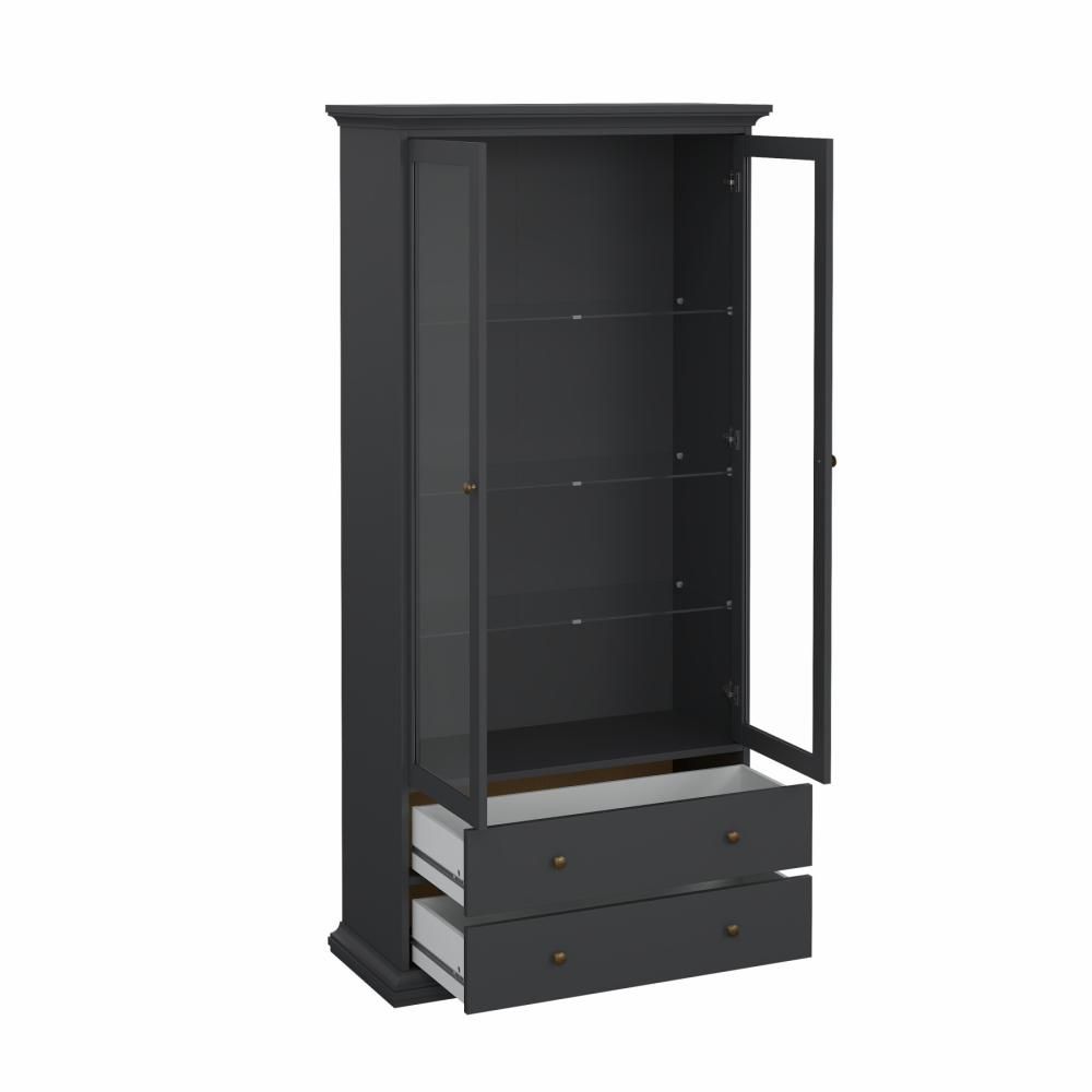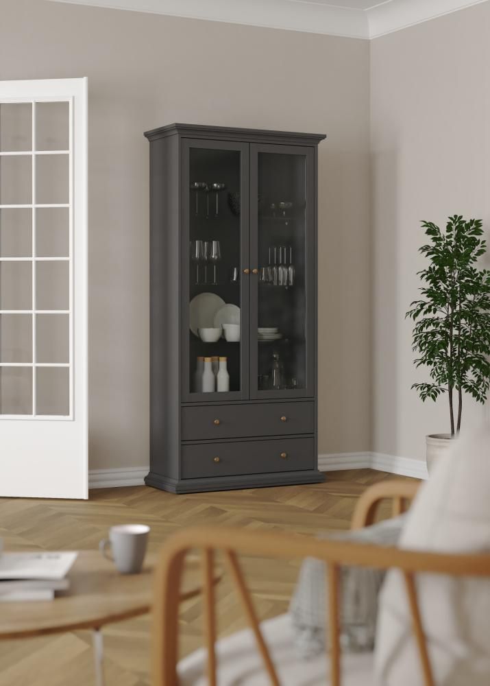 جمع فترينة عرض 'باريس' بين دفء الطراز الريفي والتصميم العملي. تتميز بقسم مغلق ببابين زجاجيين لعرض المقتنيات، بالإضافة إلى درجين في الأسفل لتوفير مساحة تخزين إضافية لأغراضك.