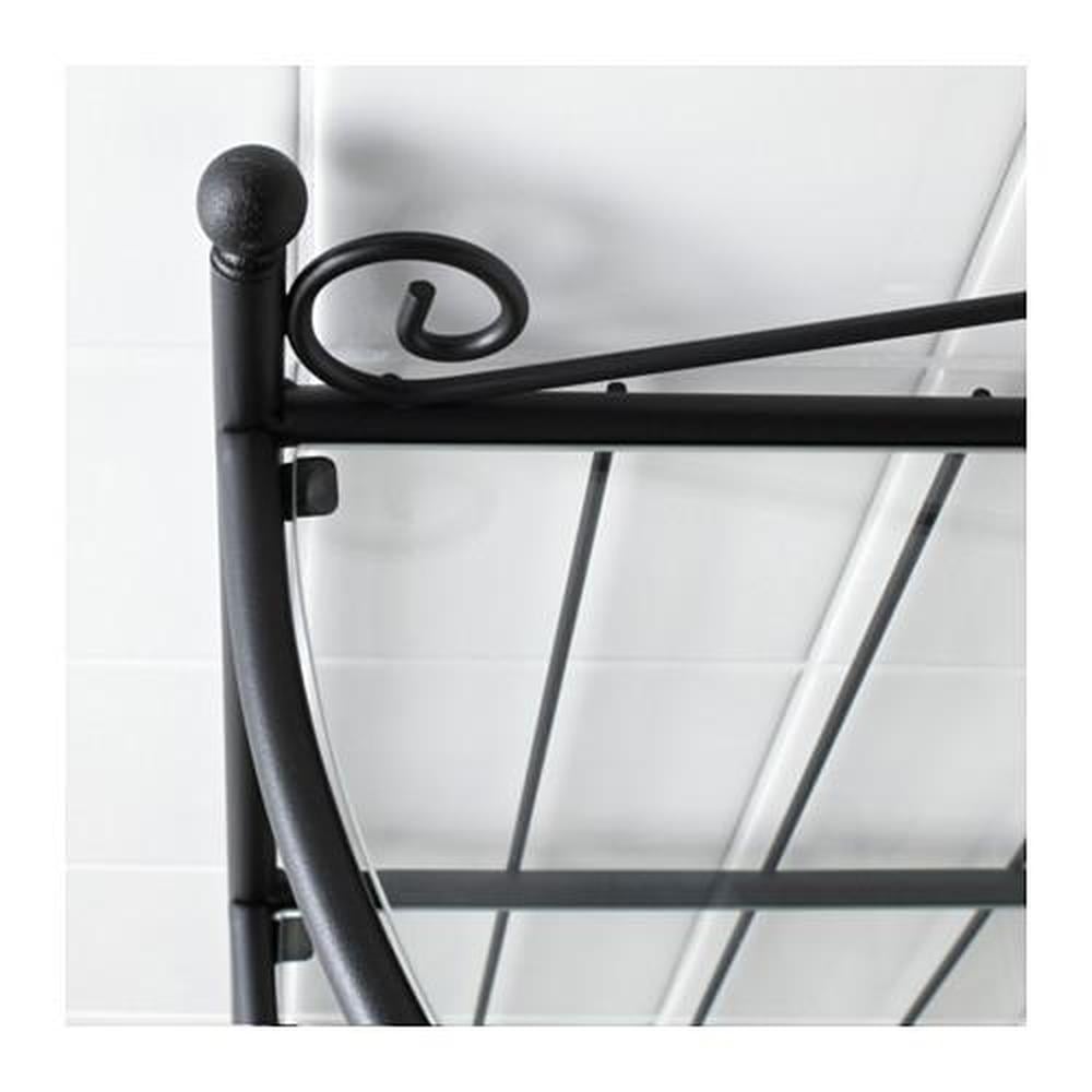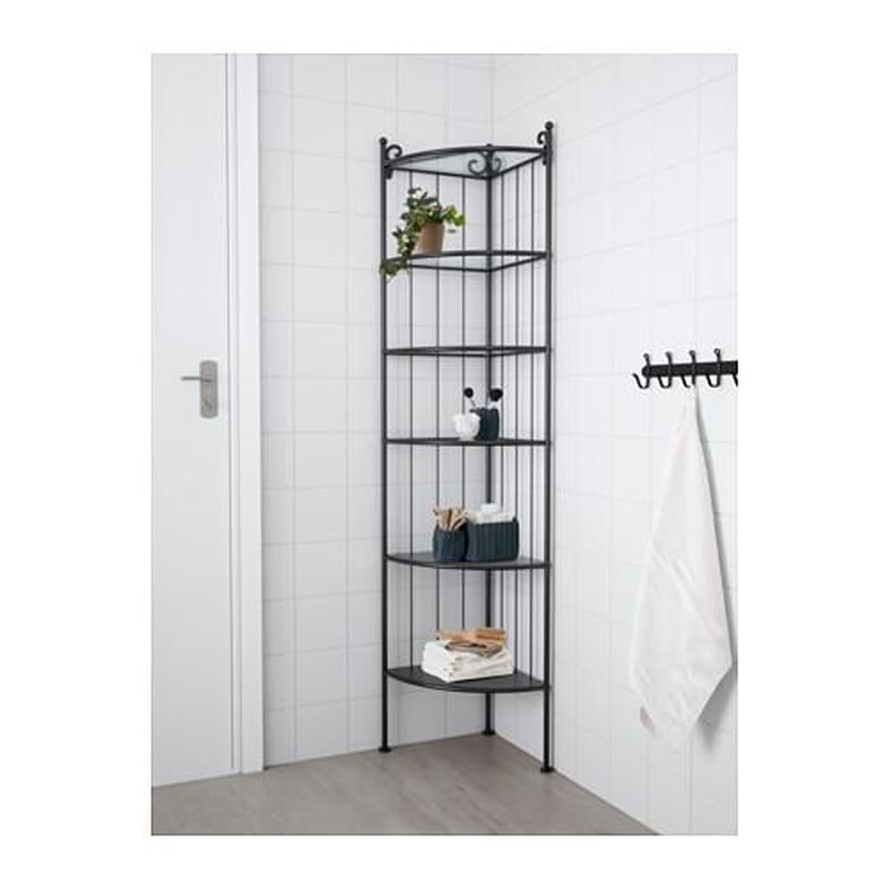وحدة رف زاوية موفرة للمساحة، مصممة من الفولاذ والزجاج المقسّى، مزودة بشريط لتعليق المناشف ورفّين عميقين لتخزين العناصر الأساسية. سهلة التنظيف وعملية، مع احتياطات لتعزيز السلامة أثناء التعامل مع الزجاج.