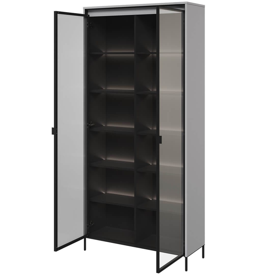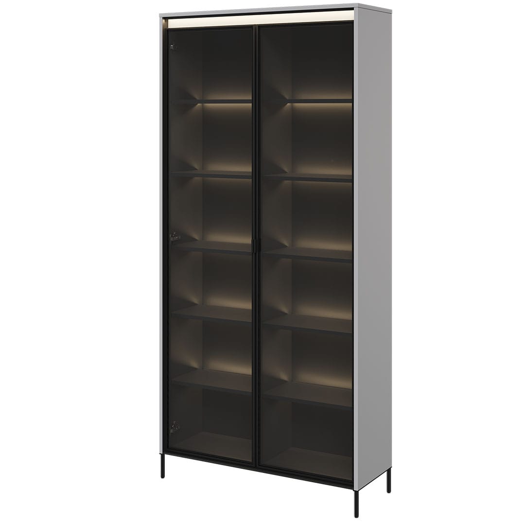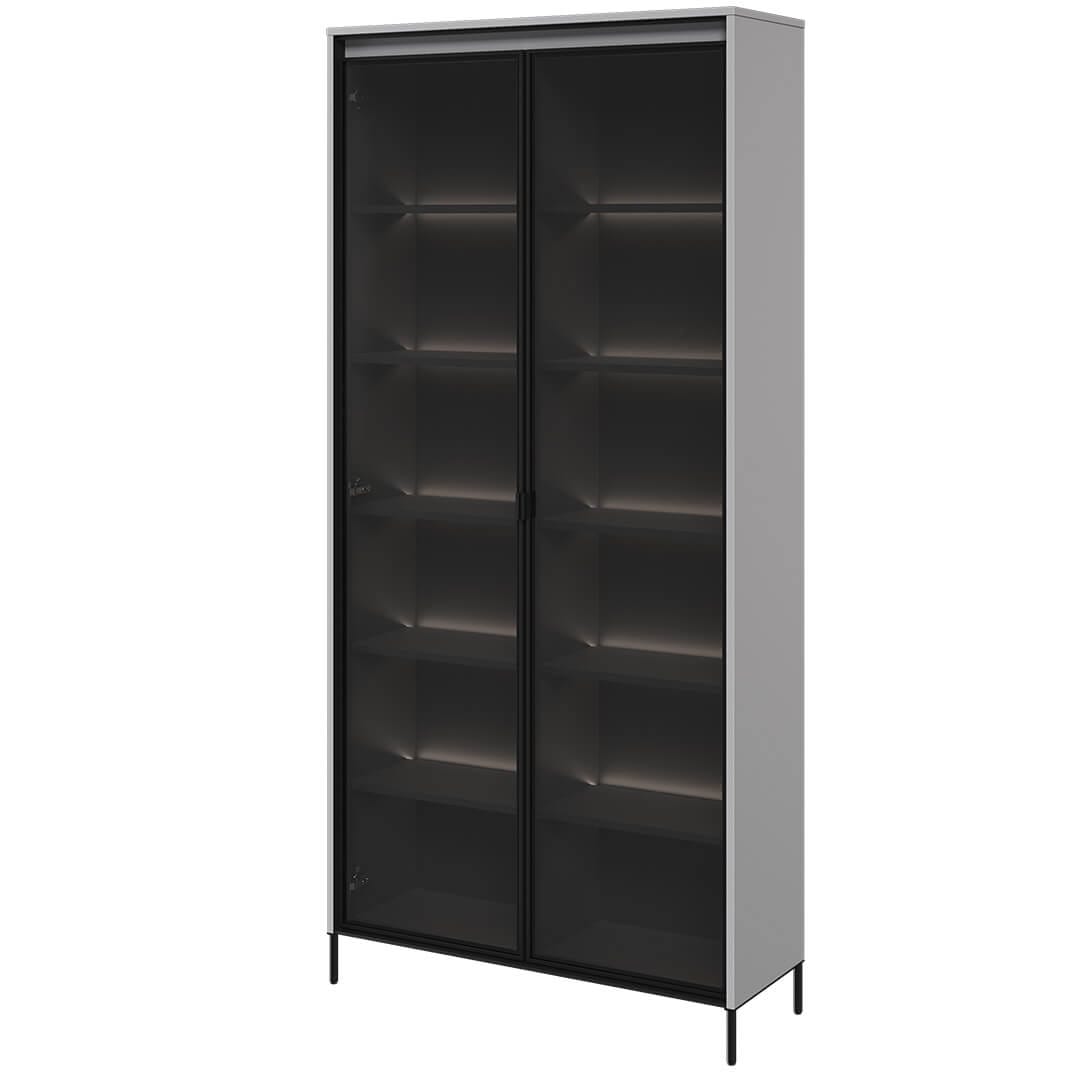 خزانة العرض الزجاجية TR-07 تضيف أناقة وعصرية لغرفة المعيشة بتصميمها الرمادي البسيط وأبوابها الزجاجية.