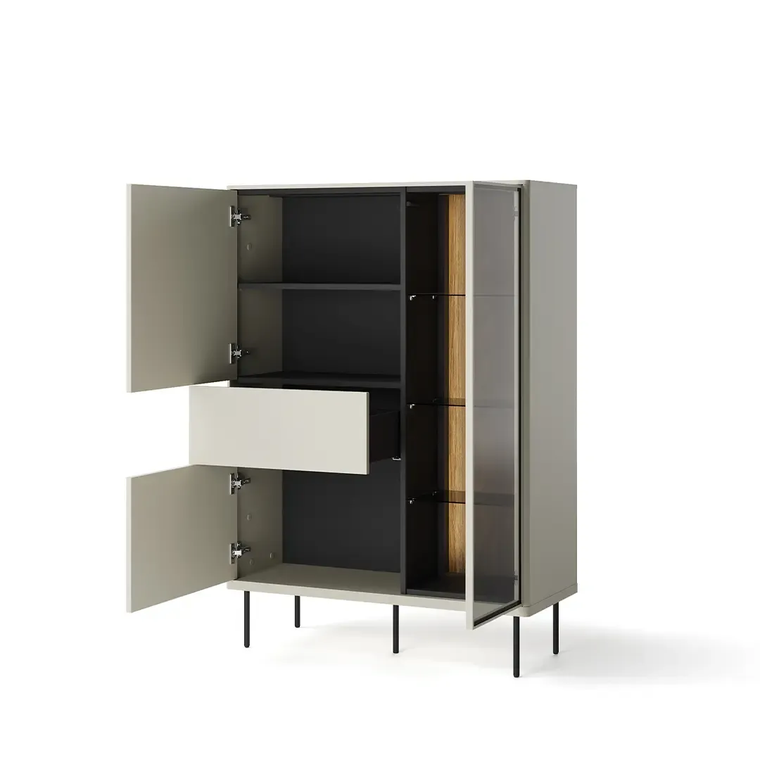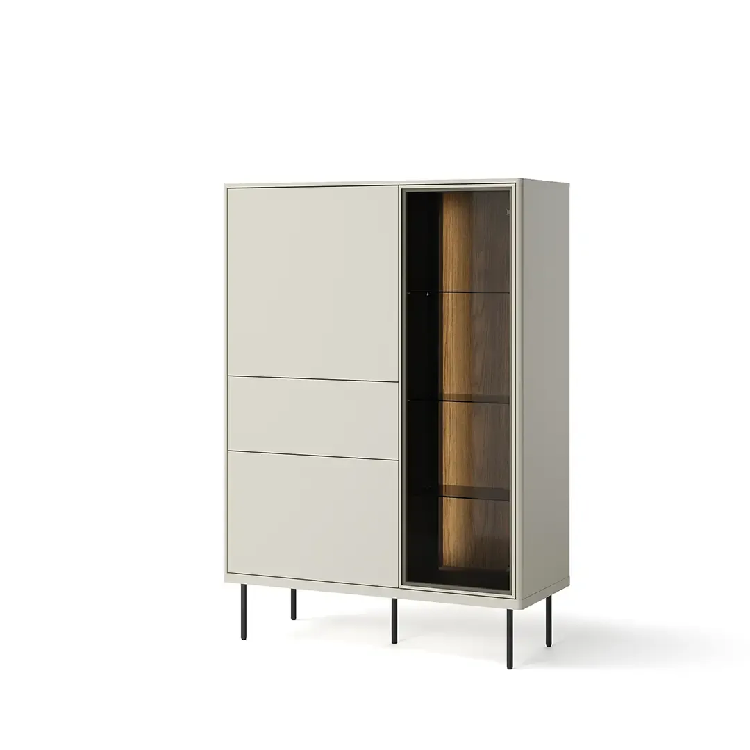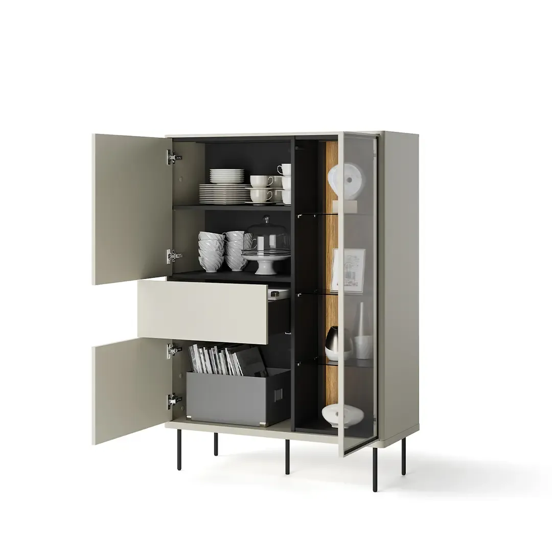 خزانة عرض عصرية لغرفة المعيشة تجمع بين الأناقة والوظائف العملية.