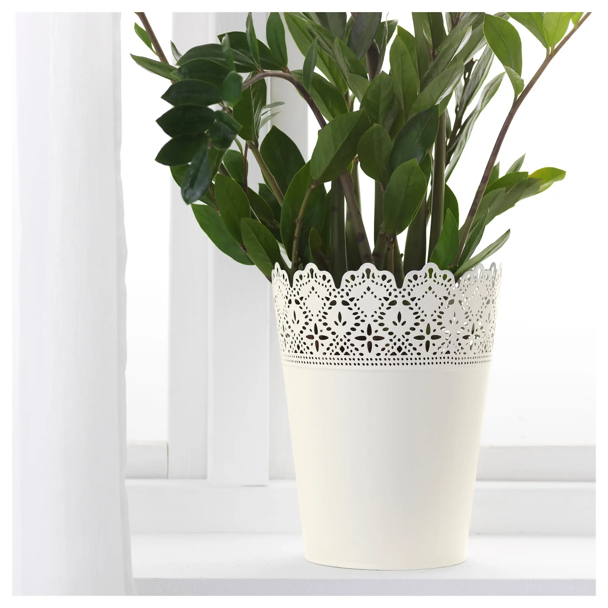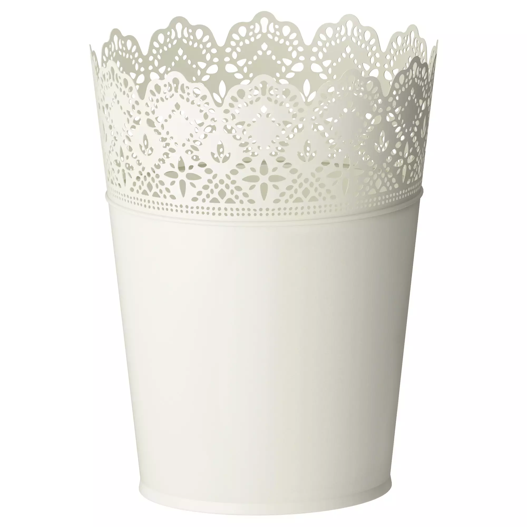 وعاء نبات (كاشبو) من مجموعة SKURAR بلون أبيض وبحجم حوالي 17 سم، مصنوع من المعدن المطلي بمسحوق لتحمّل الاستخدام الداخلي أو الخارجي. تصميم بسيط وعصري يضيف لمسة ديكور لطيفة لنباتاتك، وسهل التنظيف بقطعة قماش مبللة. يمكن استخدامه لوضع نباتات صغيرة أو متوسطة الحجم في المنزل أو الشرفة.
