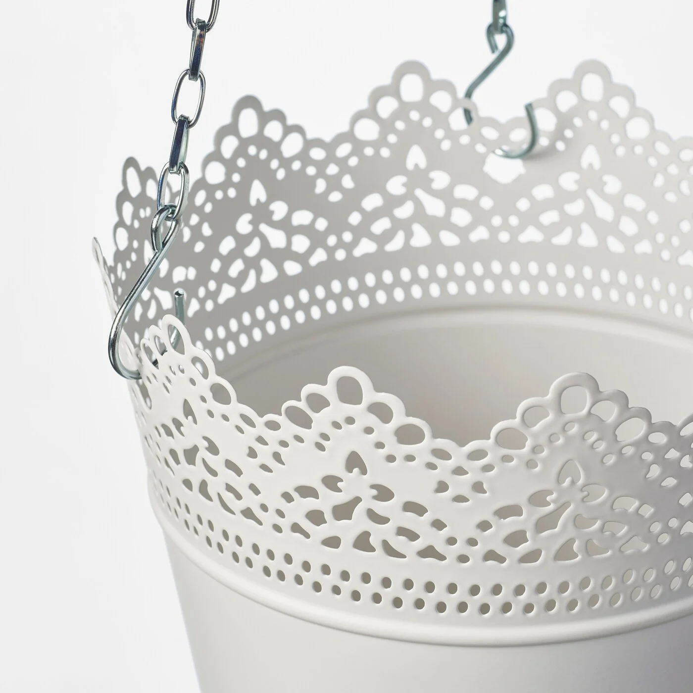 سلة نبات معلّقة بسيطة وعملية من إيكيا (موديل SKURAR) بارتفاع حوالي 20 سم وقطر خارجي 14 سم، مناسبة لتعليق النباتات داخل المنزل أو في الخارج. المصمَّمة من فولاذ مجلَّف ومغطّاة بطبقة بودر لتحمّل الظروف المختلفة، وتتحمّل وزن حتى 3 كجم. تضيف لمسة خضراء وتزيينية للمساحات بدون استغلال الأرضية.
