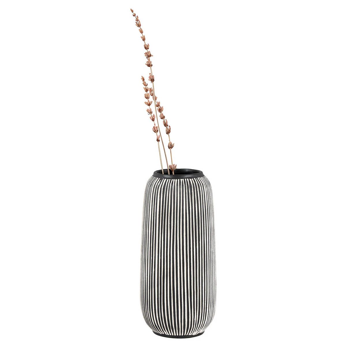 مزهرية/وعاء من السيراميك بارتفاع حوالي 20 سم وقطر حوالي 9.5 سم، بتصميم بسيط وأنيق يناسب أغلب أنماط الديكور. يمكن استخدامها كـمزهرية للزهور الطبيعية أو الصناعية، أو كقطعة ديكور مستقلة على الرفوف أو الطاولات.