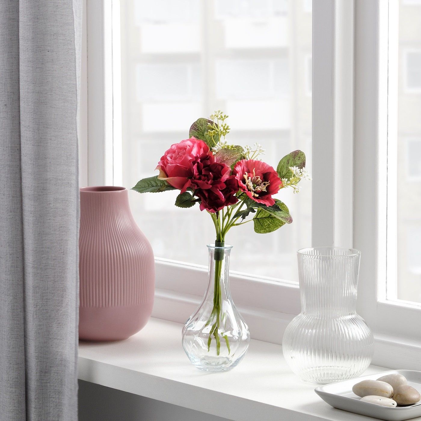 اقة من الأزهار الصناعية من سلسلة SMYCKA من إيكيا — زهور صناعية بأوراق وسيقان قابلة للتشكيل تُستخدم كديكور داخل المنزل أو خارجه دون الحاجة لريّ أو عناية.