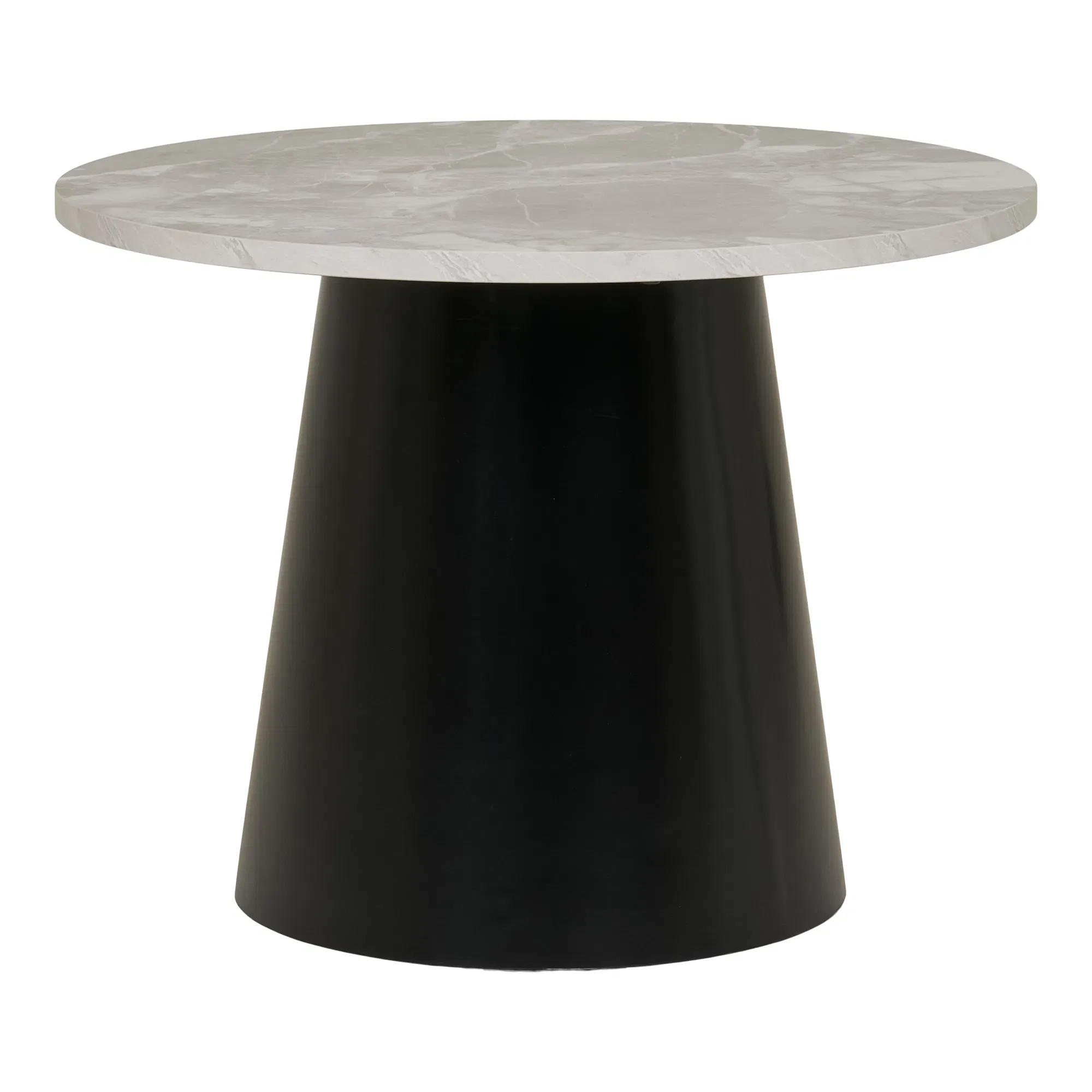 سطحها الدائري بتصميم رخامي أنيق باللون الرمادي يمنح المكان مظهراً عصرياً وراقياً.