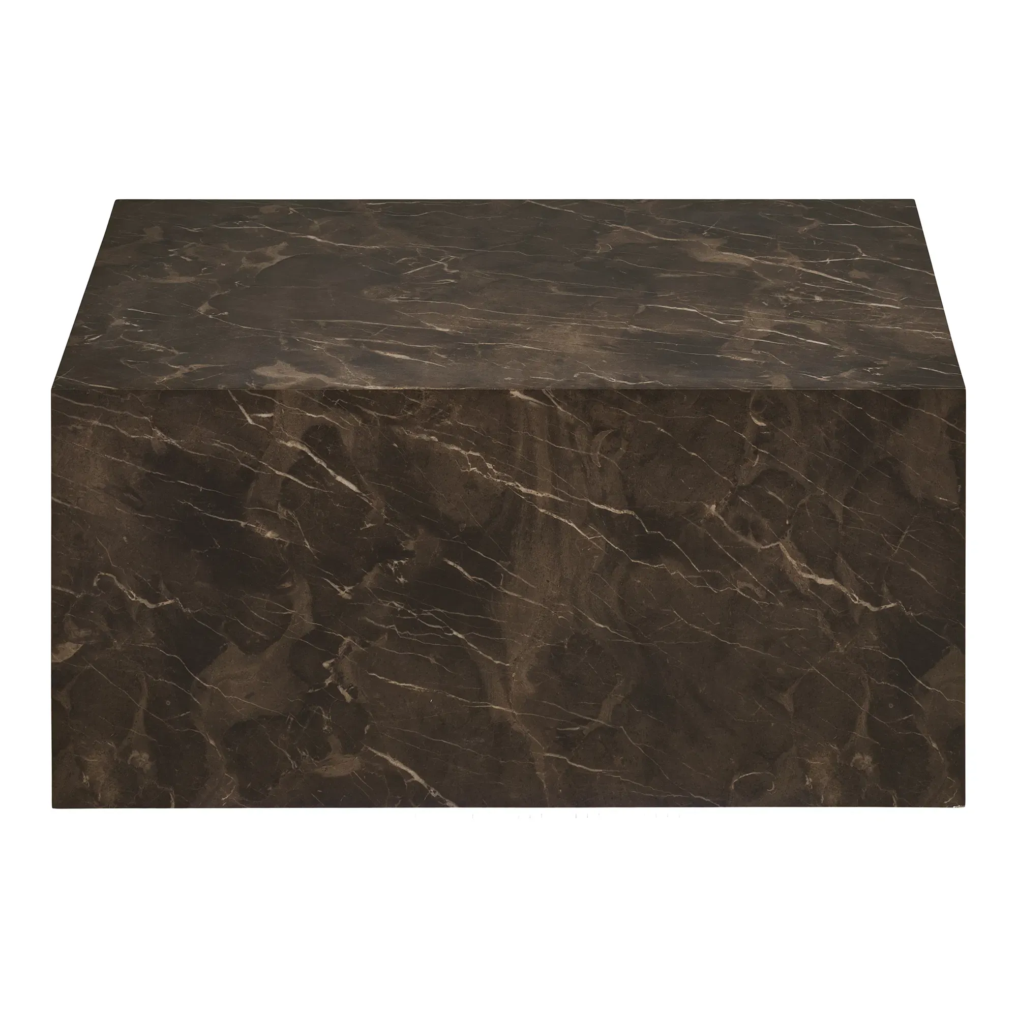 طاولة قهوة من تصميم “Prague” بلون بني وملمس يشبه الرخام — أبعاد 60×80×40 سم.